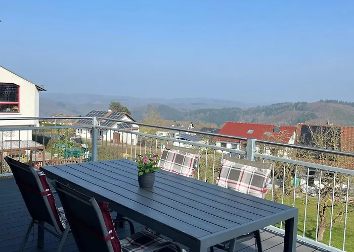 Situé à environ 3 km de Wensburg, Villa Haus Mit Aussicht à Lind invite les clients à se détendre sur une terrasse.